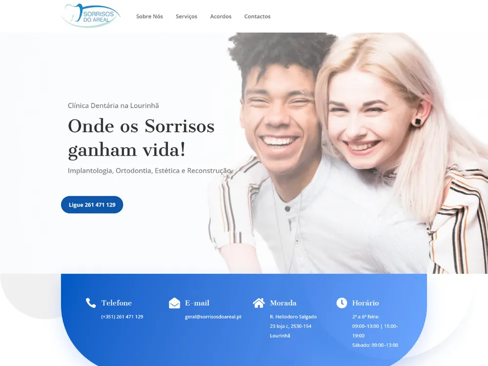 1º lugar no Google para "dentista na Lourinhã". De zero presença online a referência digital da área. Desempenho 99/100 · SEO 100/100.